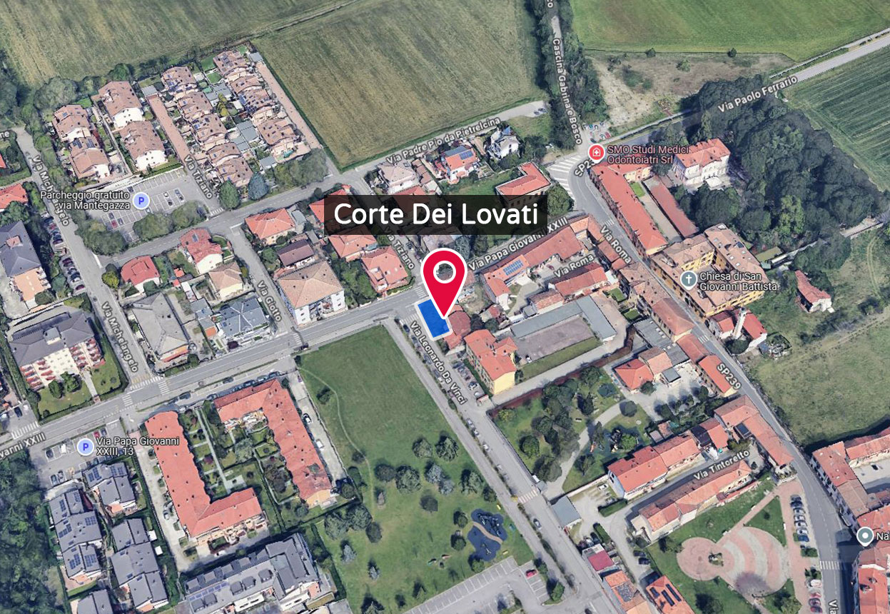 Corte dei Lovati si trova a Mantegazza, una tranquilla frazione del comune di Vanzago, in provincia di Milano, immersa nel verde della pianura lombarda.